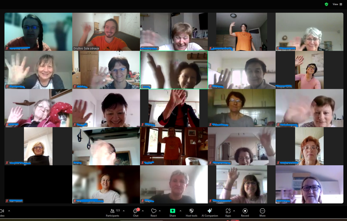 V prvih dveh mesecih leta 2026 Društvo Šola zdravja podarja brezplačno jutranje razgibavanje, ki bo potekalo preko platforme Zoom. Vadba bo na voljo od 5. januarja do 27. februarja, vsak delovni dan od 8. do 9. ure.