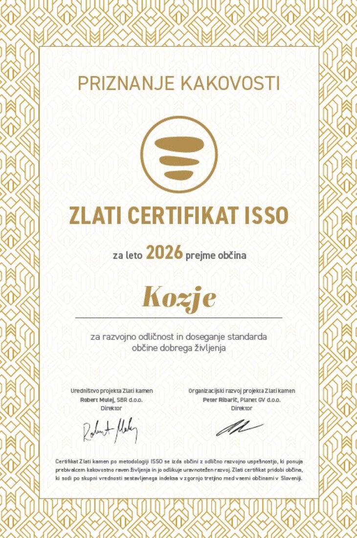 OBČINI KOZJE ZLATI ISSO CERTIFIKAT RAZVOJNE ODLIČNOSTI ZA LETO 2026