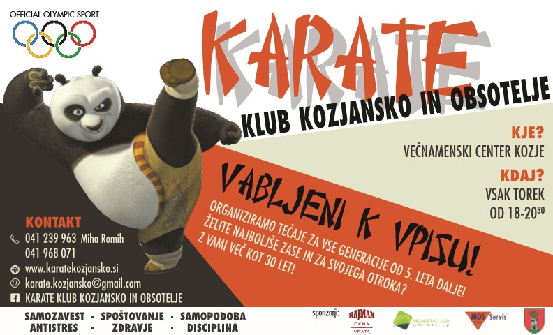 Karate klub Kozjansko in Obsotelje vabi k vpisu v organizirane tečaje karateja za vse generacije.
